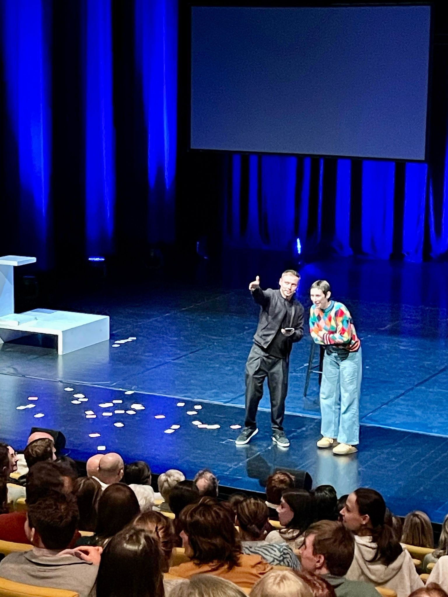 Af en toe werd ik vriendelijk aangesproken door mensen die ik eigenlijk niet ken. “Het is de zus, maar ook hallo hoor”, is dan mijn vast antwoord. Dat krijg je als je tweelingzus voor de stad Sint-Niklaas werkt natuurlijk. Toen de show naar zijn einde liep, werd ik op het podium geroepen. Ik mocht twee mensen aanduiden in de zaal. Ik koos voor mijn man en voor de zoon van de bewoner.
