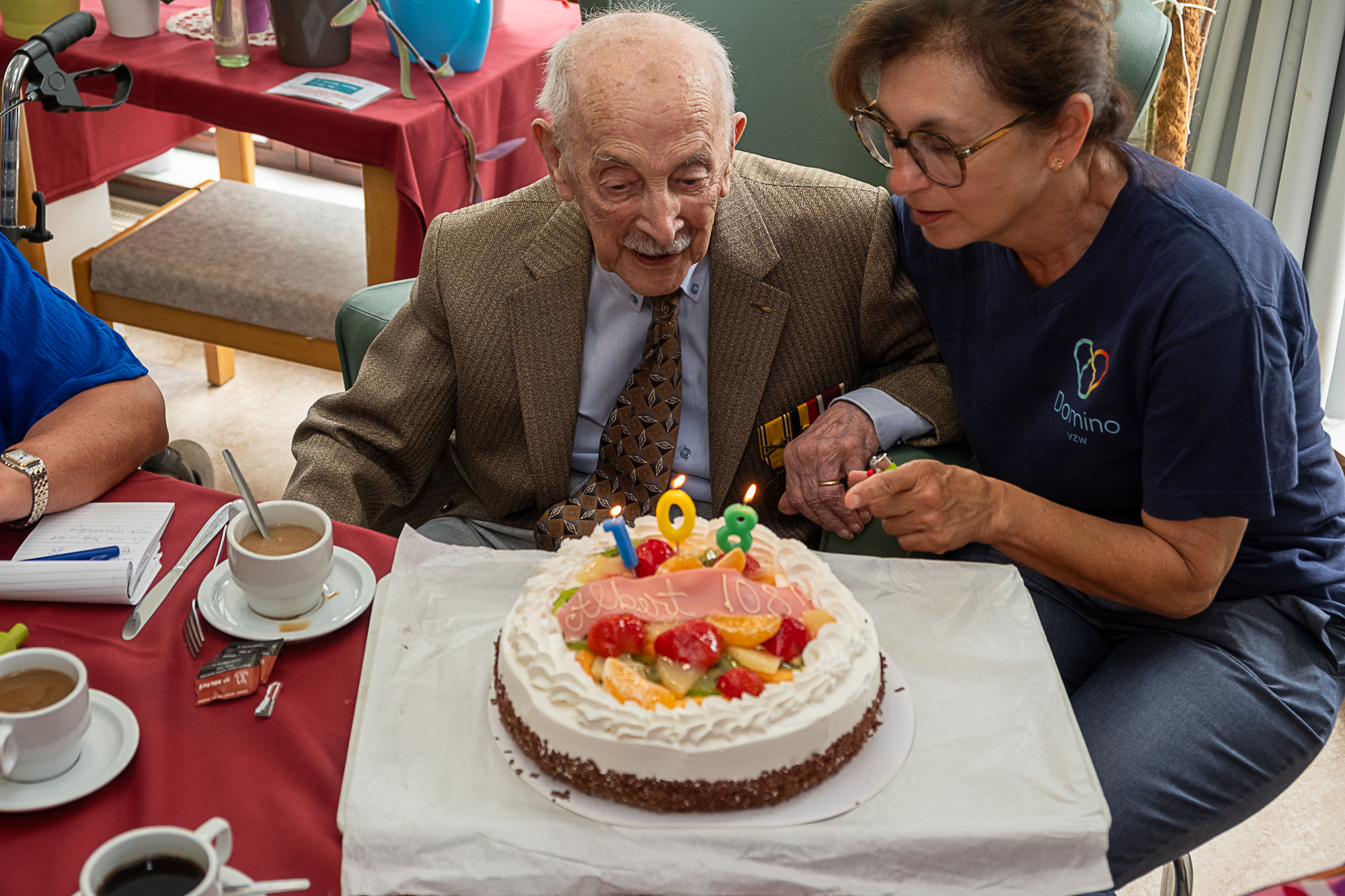 Albert Libert “Net voor mijn 104e verjaardag kwam ik in Tempelhof wonen; tot dan woonde ik gewoon thuis. Maar ik woon hier graag. Mijn 108ste verjaardag vier ik dus in WZC Domino Tempelhof. De oudste vent, want ….om toch maar in een cliché te vervallen: het sterke geslacht blijft me nog even voor: er is een vrouw toch net iets ouder dan ik zeker?….” Albert werd geboren in Ename, een deelgemeente van Oudenaarde, in 1917.