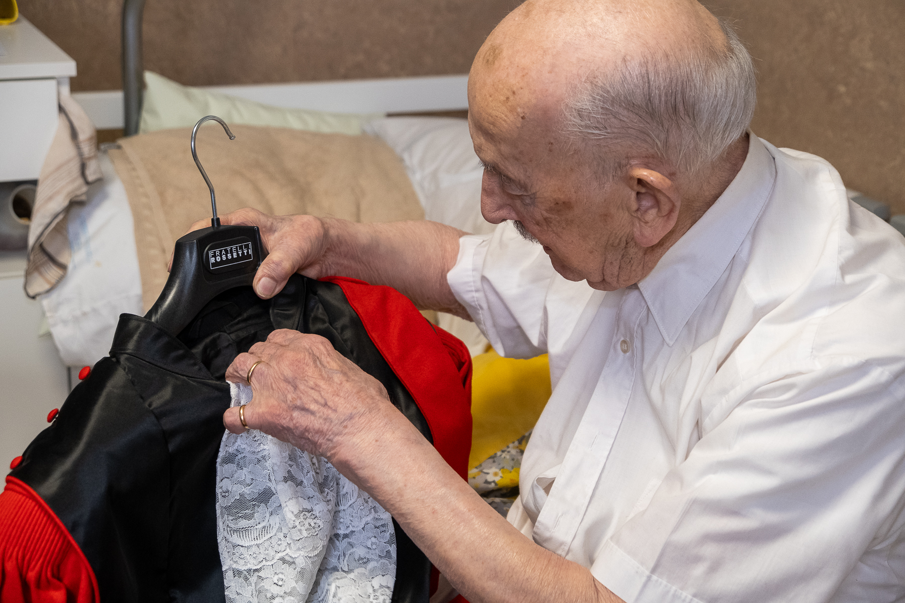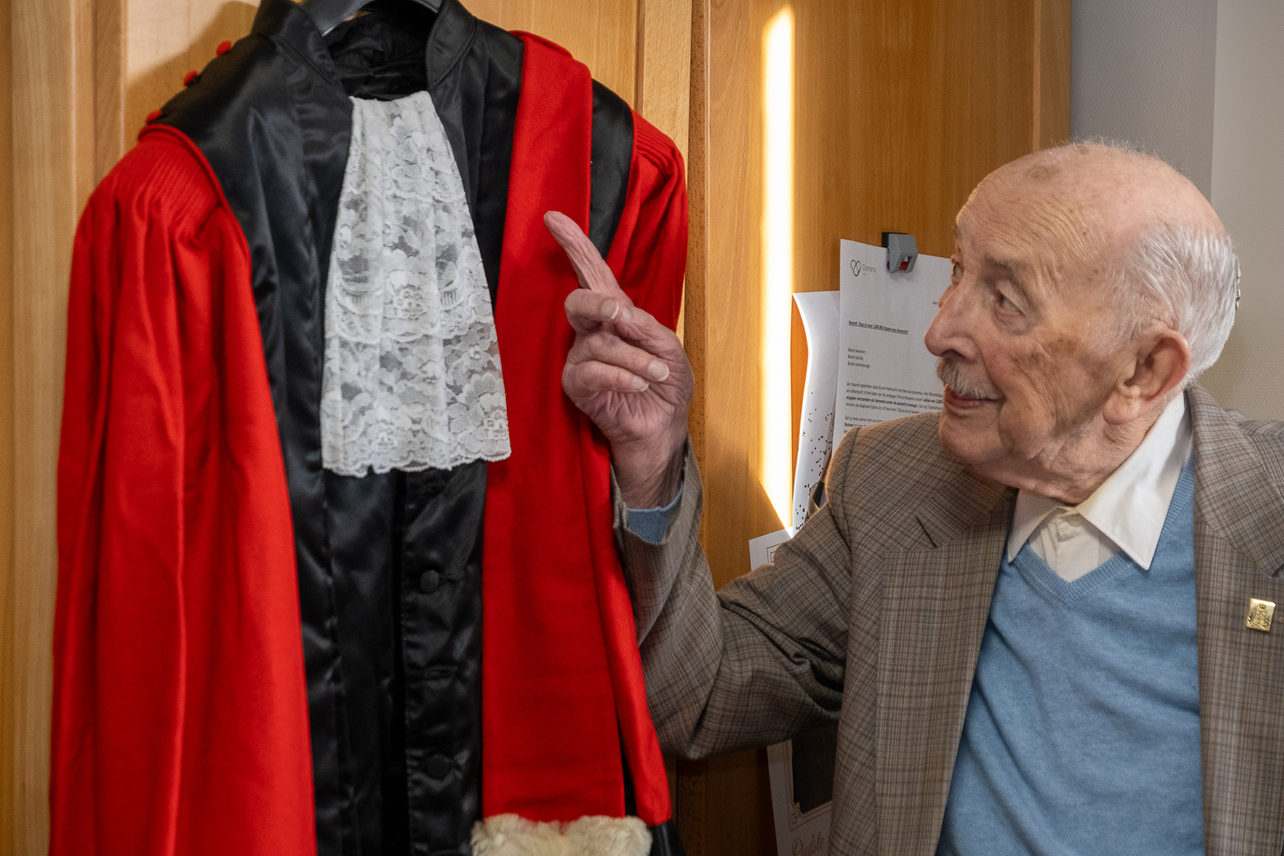 “Ik kijk er eigenlijk een gans jaar naar uit!” zegt Albert. “Mijn Kamer wordt mooi versierd en ik kan mijn beste kostuum aantrekken. “Als kleermaker vind ik dat heel belangrijk, zegt hij trots. Ik nam het bedrijf van mijn vader over en maakte jarenlang gewaden voor priesters en maakte ook toga’s voor advocaten en rechters.” Ook de medailles van oud-strijder blinken op zijn kostuum. Terecht als je het ons vraagt!