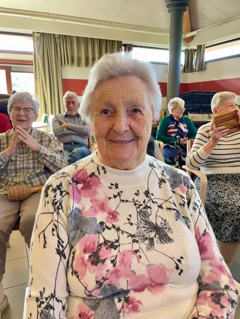 Anselma nam na afloop van de activiteit haar rollator en stapte stralend de zaal uit. “Het was goed hé!”, zei ze tegen niemand in het bijzonder. “Ik fleur daar helemaal van op”.