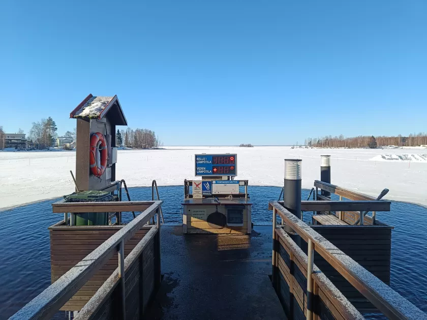 "Eén ochtend begon met een verrassende en spannende activiteit: ijszwemmen in een meer. Tot onze verbazing zagen we heel wat oudere Finnen zonder aarzeling het ijskoude water instappen, een rondje zwemmen en daarna hup de sauna in—om vervolgens het hele proces nog een paar keer te herhalen. Wij stonden vol bewondering te kijken naar de vastberadenheid en het schijnbare gemak waarmee deze ouderen het koude water trotseerden.