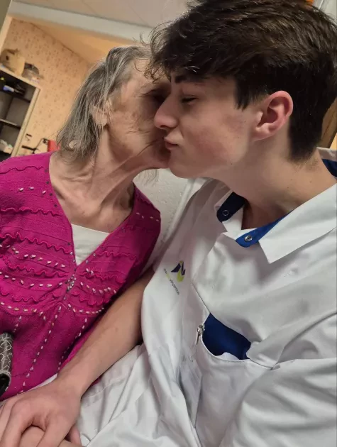 Daan: “Ik startte in techniek, maar dat was niets voor mij. Ik schakelde over en moest een keuze maken voor verzorging of kantoor in het vijfde middelbaar. Via enkele proeflessen kon ik eens uitproberen wat me het beste lag. Dat was duidelijk verzorging. Mijn vader is ook verpleegkundige en dat inspireerde ook wel. Mijn vrienden reageren soms: 'Allez Daan, jij moet oude mensen wassen en zo, dat is toch raar.' Het lijkt hen allemaal af te schrikken, maar je krijgt er zoveel liefde voor terug …. Ik doe al een hele tijd weekendwerk in een woonzorgcentrum. En ik vind dat de max.